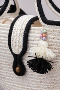 - Un bijou de sac artisanal (pompon et perles) qui rappelle les couleurs vibrantes de notre patrimoine.