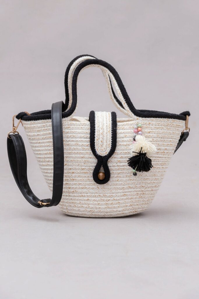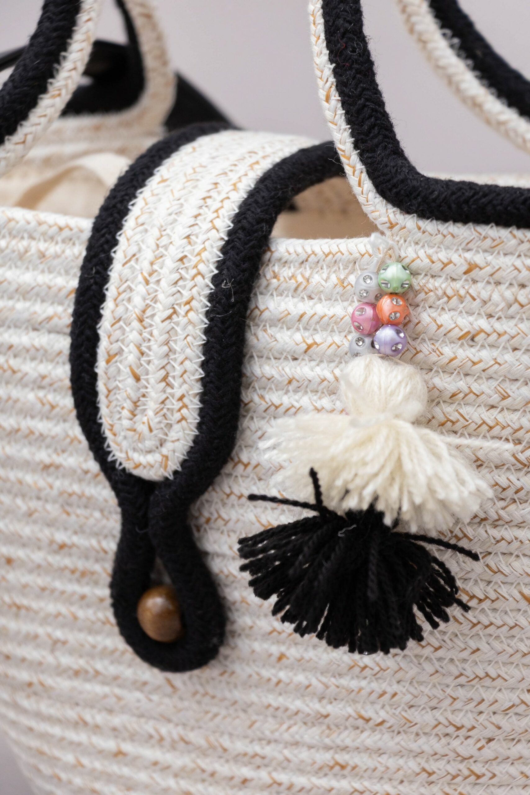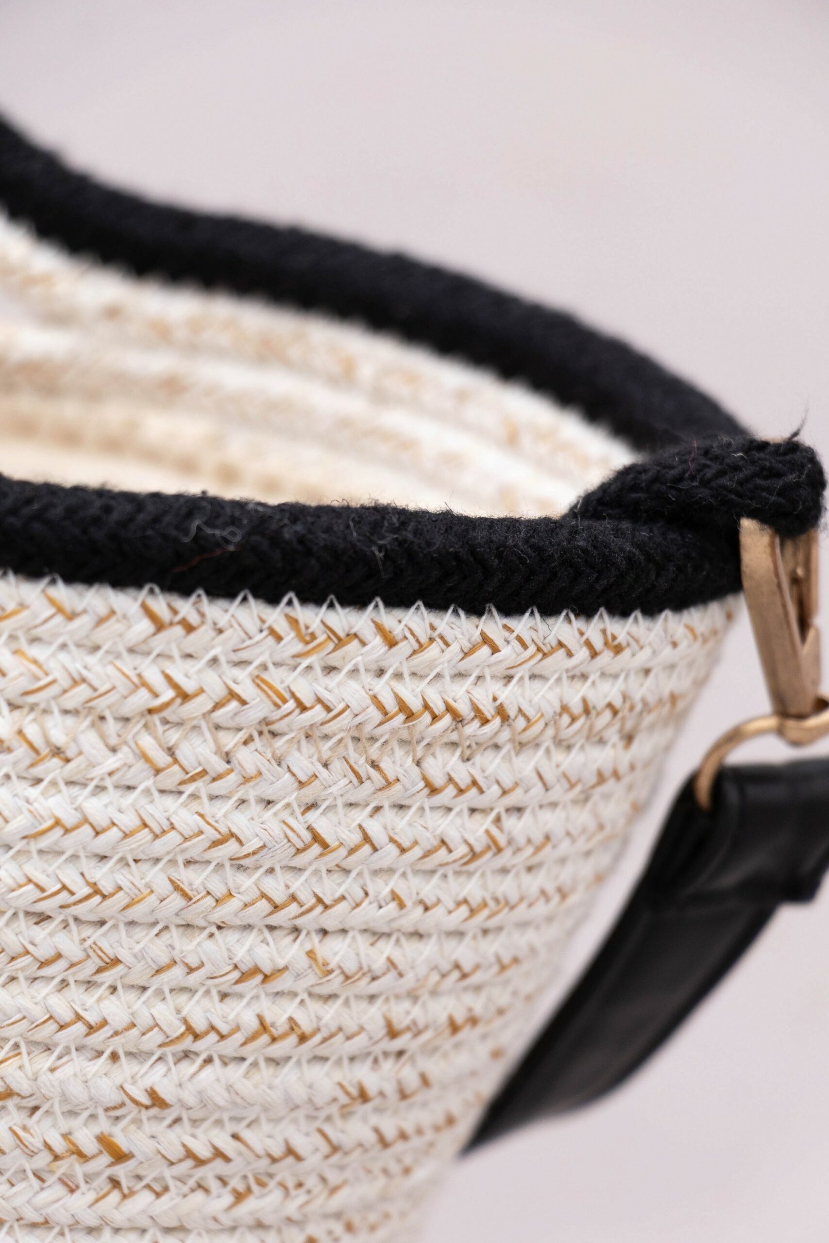 - L’Élégance du Cuir : Équipé d’une anse et d’une bandoulière en cuir noir de qualité supérieure. Cette touche de cuir apporte un contraste noble avec la corde naturelle et assure un confort optimal lors du porté.