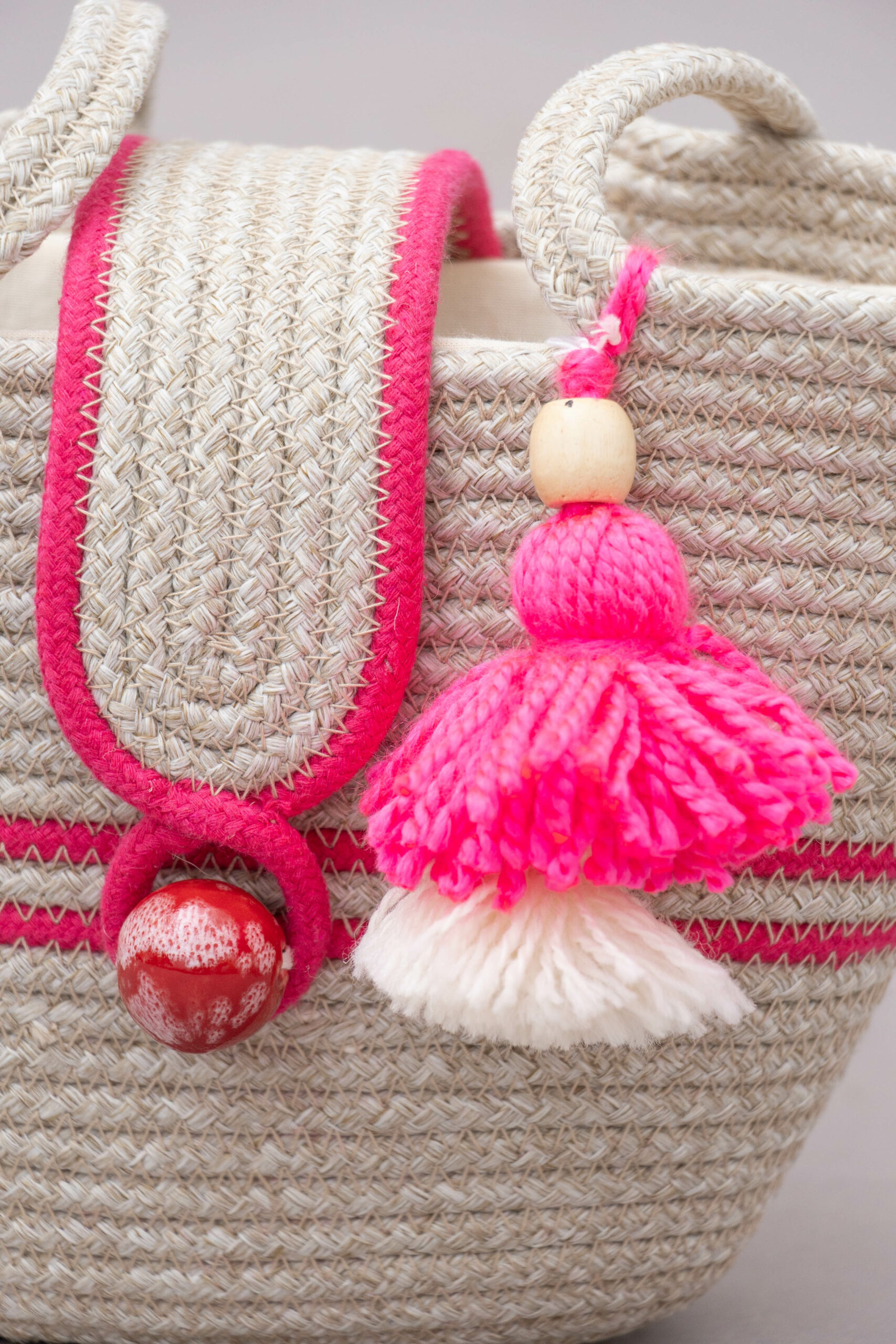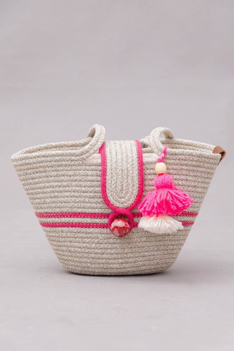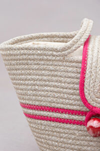 Sac cabas de taille moyenne en corde de coton aux nuances Rose et Beige.