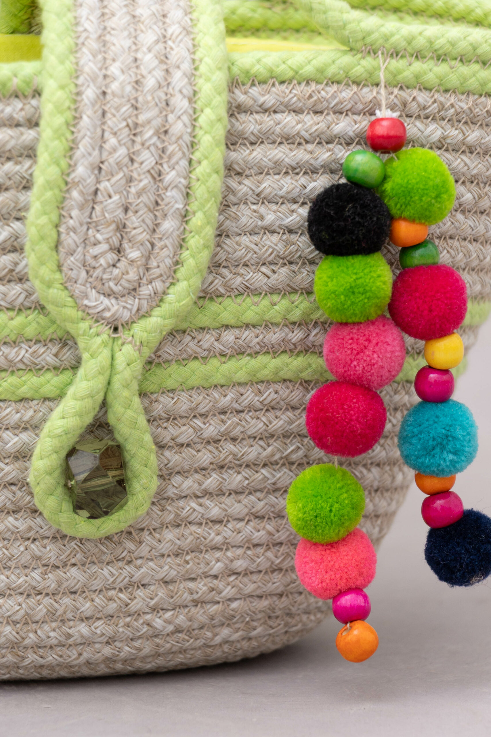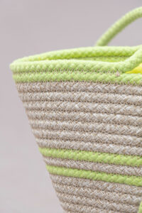 Sac à main de taille moyenne en corde de coton, renforcé par une doublure intérieure : protectrice. Cousu à la machine avec le fil de montage pour une robustesse et une finition haut de gamme.