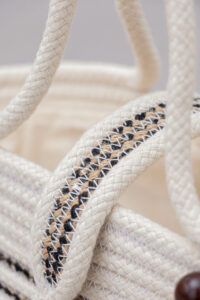 Une pièce de joaillerie artisanale. Ce mini cabas en corde naturelle, assemblé avec la précision du fil de montage Gyem, séduit par ses motifs délicats et sa taille compacte, idéale pour sublimer vos tenues légères.